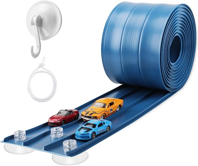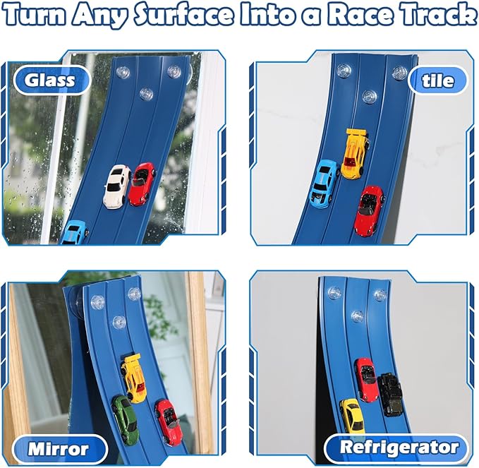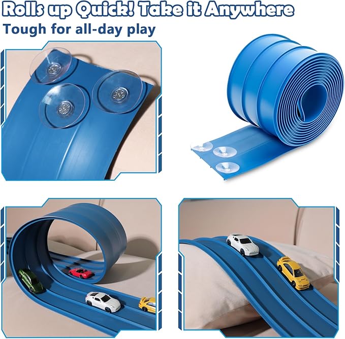 3-Lane Flexible Race Track for Kids 15ft Race Car Track Compatible with Hot Wheels, Matchbox and Diecast 1/64 Scale Cars, Flexible Car Track Race Ramp Toy with Strong Suction Cups