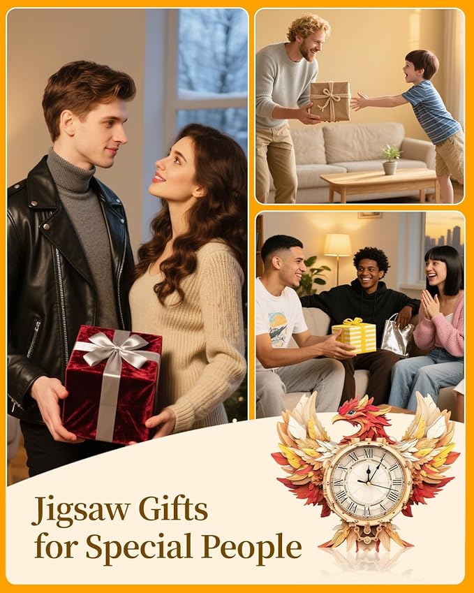 3D Wooden Puzzles for Adults, 3D Puzzle Phoenix Clock (with Pendulum), 3D Puzzles for Adults Teens Home Decor Clock Crafts for Adult Puzzle Gifts for Adult