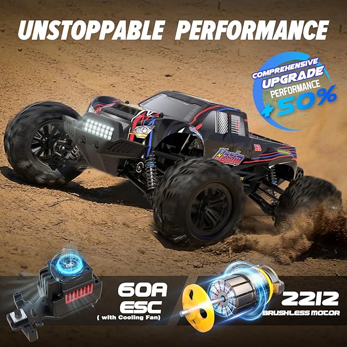 Hosim 1/10 RC Cars for Adults 62+KMH, Brushless Remote Control Car Fast, 2S Bettery RC Monster Trucks 4X4 Waterproof Off Road