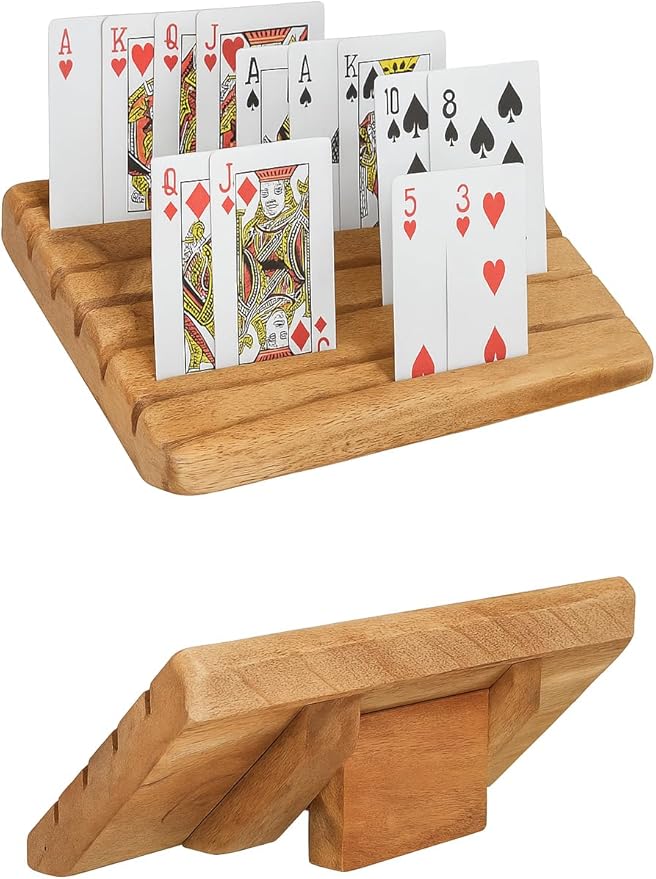 Wooden Playing Card Holder for Table Games, Card Storage and Display Card Holders for Playing Cards with Adjustable Stand Set of 2, for Adults Seniors Kids, 5 Slots