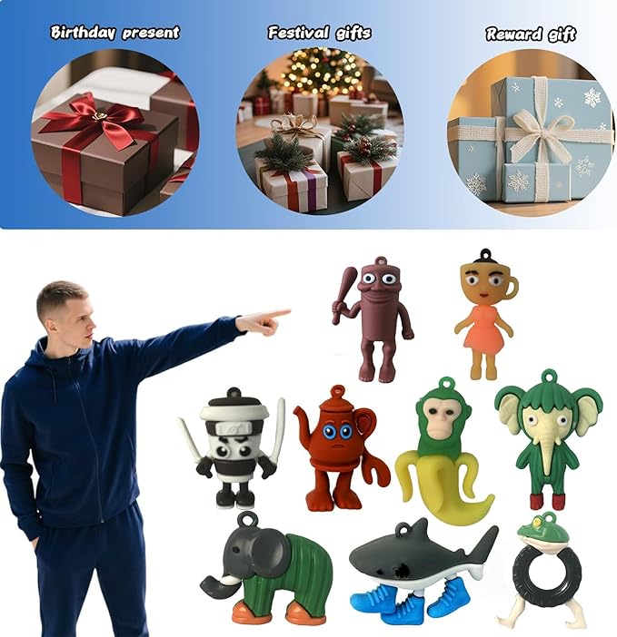 Tralalero Tralala Action Figure,Tung Tung Sahur Meme Unique Action Figures Decorations Gifts, Toys Desktop Decor 12PCS(Brown)
