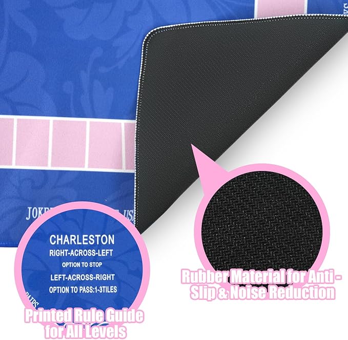 Mahjong Mat with Carrying Bag for Table 32x32 Inch – Non-Slip Noise-Reducing Rubber Mat with Rules for Mahjong, Poker, Card Games, Board Games & Dominoes (Pink)