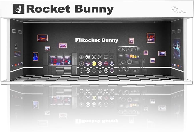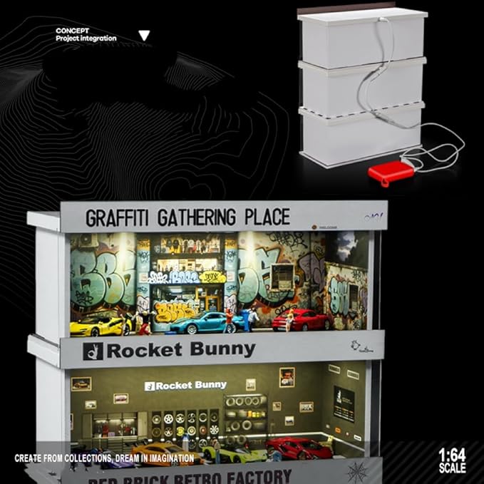 Display Case for Hot Wheels: Stackable Parking Garage for 1/64 Scale Matchbox Toy Car, FoamBoard Storage for Monster Trucks with LED Light and Acrylic Cover, 2025 Upgraded Rocket Bunny