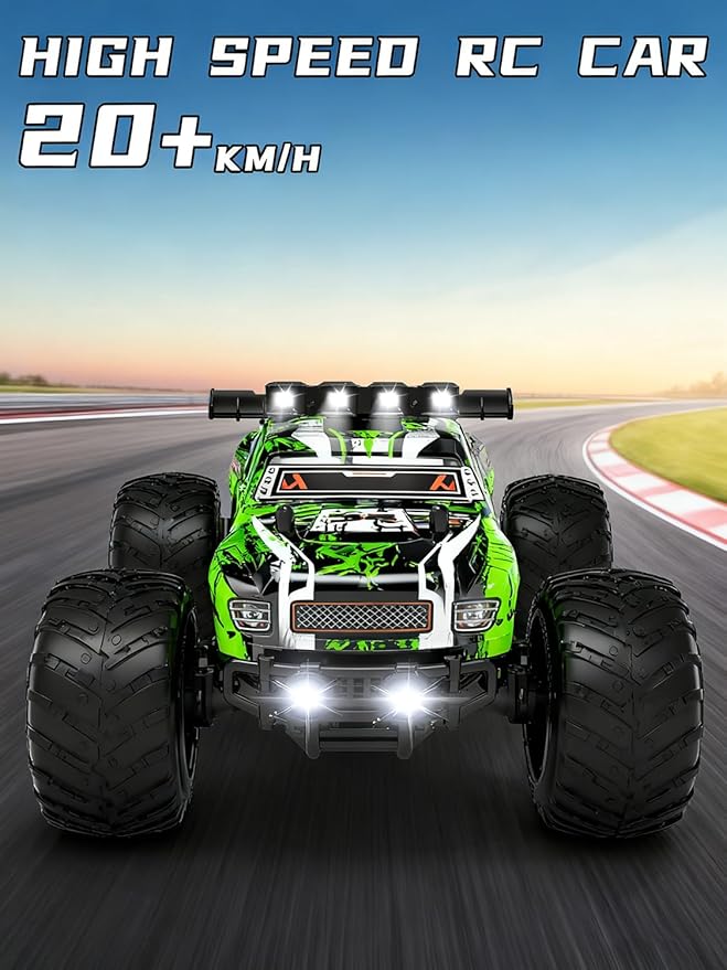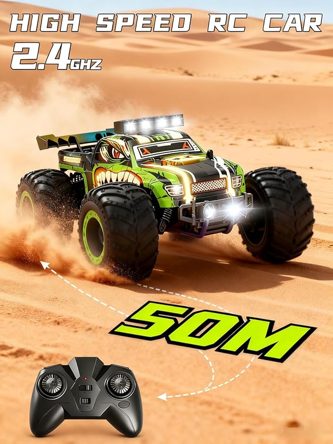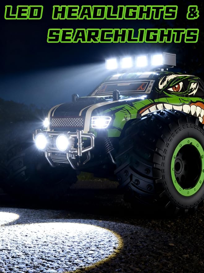Remote Control Car,RC Cars Toy,High Speed 20 KM/H RC Truck Off-Road with 2 Headlights and 2 Rechargeable Battery,Dinosaur Toys Gift for Adult Boys Kids 4+ Years