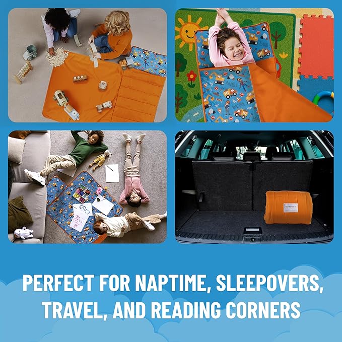 Jay Franco Kids Nap Mat with Embedded Pillow & Blanket – Soft 46"x20" Microfiber Sleeping Bag with Name Tag & Handle