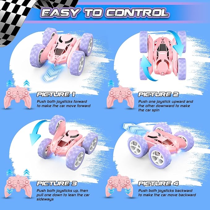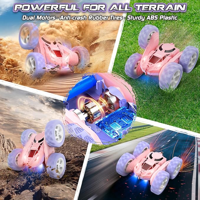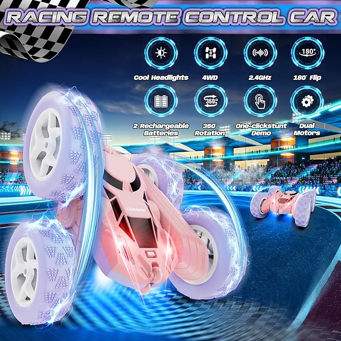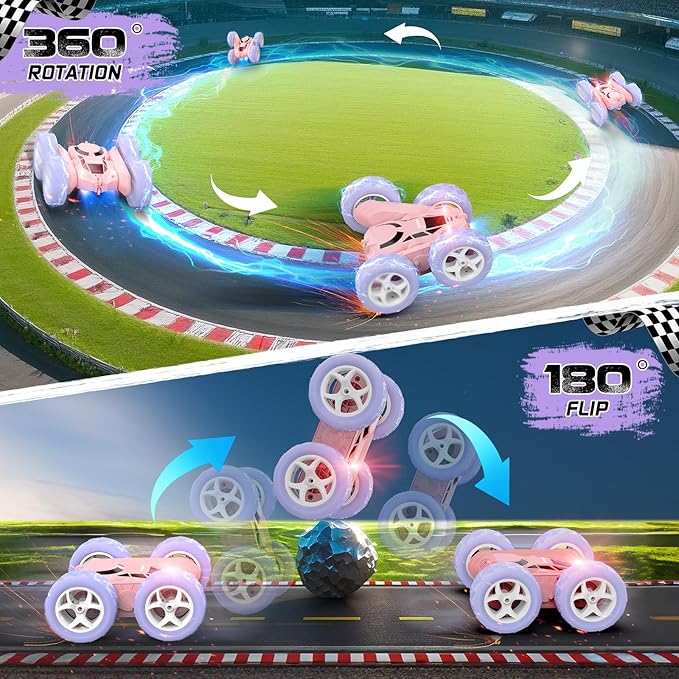 RC Stunt Car Remote Control Cars with Lights Double-Sided Driving Indoor Outdoor Toys Gifts Presents for 6 7 8 9 10 11 12 Year Old Kids Boys Girls