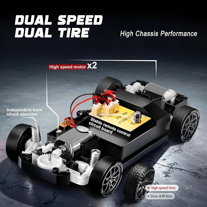 1:24 Scale RC Drift Car with Proportional Tuning & Gyro Control – 25km/h 4WD High Speed, Dual Batteries 50+ Min Play, 2.4GHz Remote – Multi-Surface Drift Tires + LED Lights Storm Drive