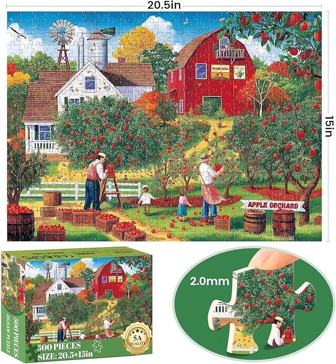 500 Piece Puzzles for Adults,Apple Picking Puzzles for Kids Teen Adults,Recycled Paper Jigsaw Puzzle,Interlock Perfectly Letter on Back,Challenging Family Game for Friends Men Women Seniors,20.5*15In