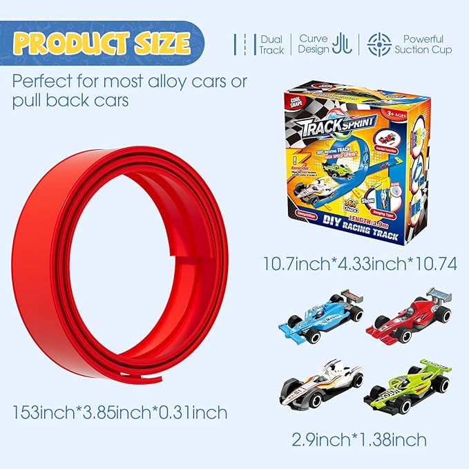 13 Ft Flexible Race Car Track Compatible with Hot Wheels and Diecast 1:64th Cars,Classic Long Rolls Up Portable Racetrack Roll Up Race Track, Birthday Gifts for Boys Girls Ages 3-12, Red