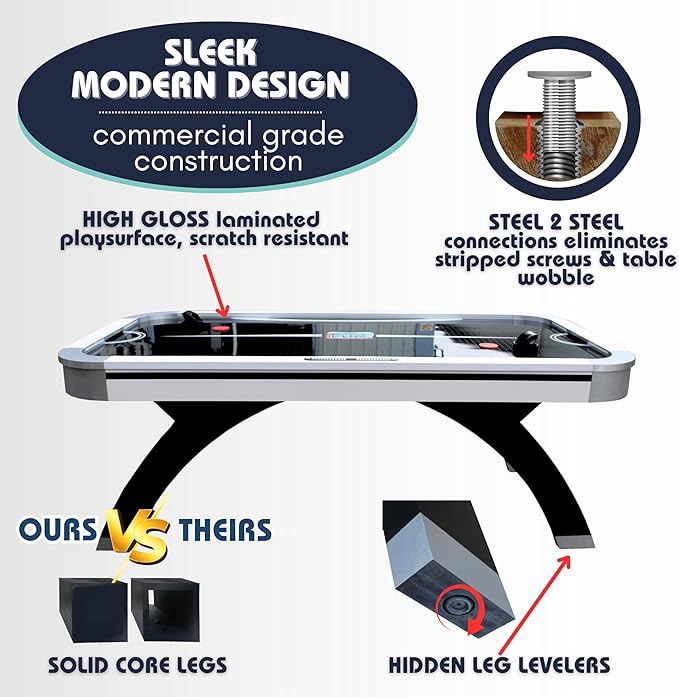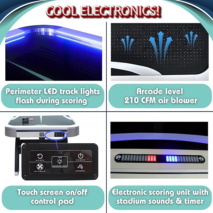 Freetime Fun Air Hockey Table 7 ft Game Table for Adults Light Up - Full Size Arcade Air Powered Indoor LED Hockey Table for Game Room