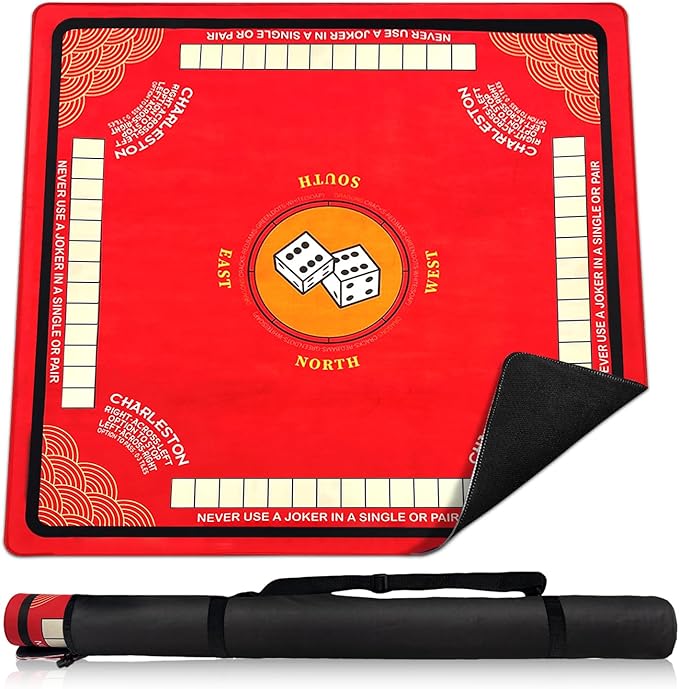 Mahjong Mat for Table with Anti Slip and Noise Reduction, 31.5" x 31.5" Game Mat with Carrying Bag for Poker, Card, Board & Tile Games(Red)