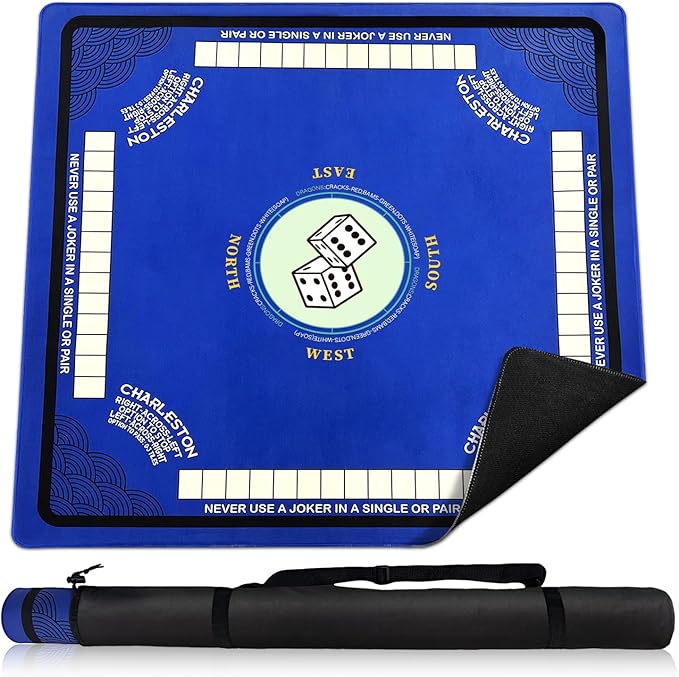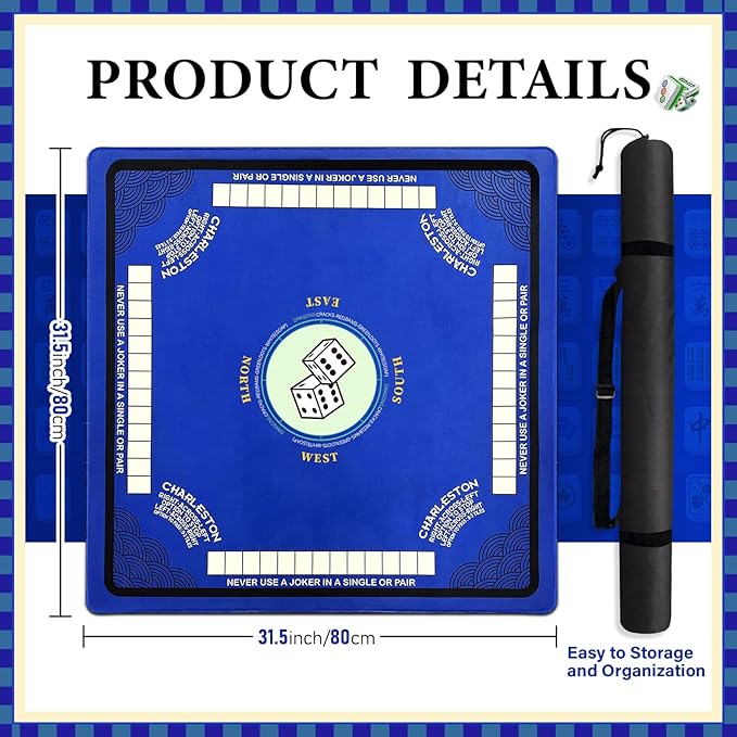 Mahjong Mat for Table with Anti Slip and Noise Reduction, 31.5" x 31.5" Game Mat with Carrying Bag for Poker, Card, Board & Tile Games(Blue)