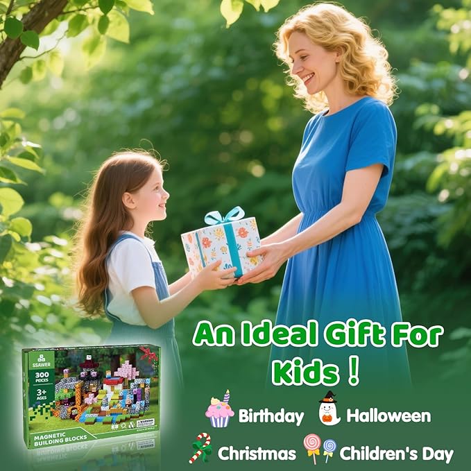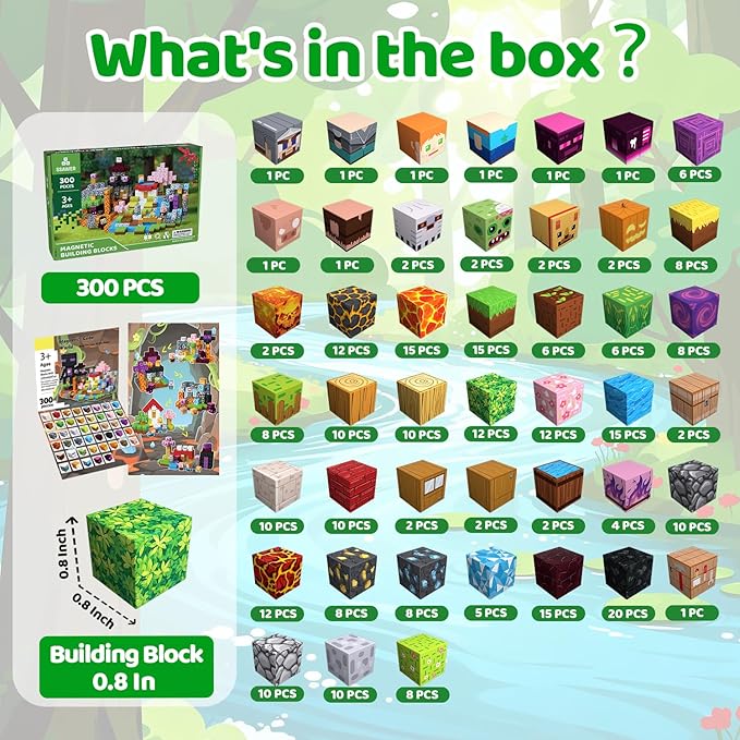 About This 【Magnetic Blocks for Kids】This set includes 300pcs 0.8inch magnetic blocks in 45 distinct designs, plus a creative storybook... Read more