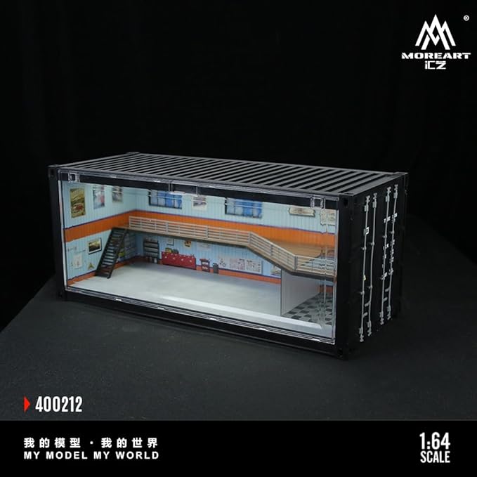 1:64 Scale Container Repair Shop Diorama with LED Lighting and Acrylic Cover β Model Car Garage for Hot Wheels, MiniGT, Matchbox β Workshop Display Case β 38.7x16.5x16.5 cm