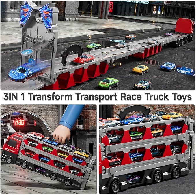 About This Transform Truck Toys Designed for Children - Our truck toy has dual launcher tracks for competitive racing, 78... Read more
