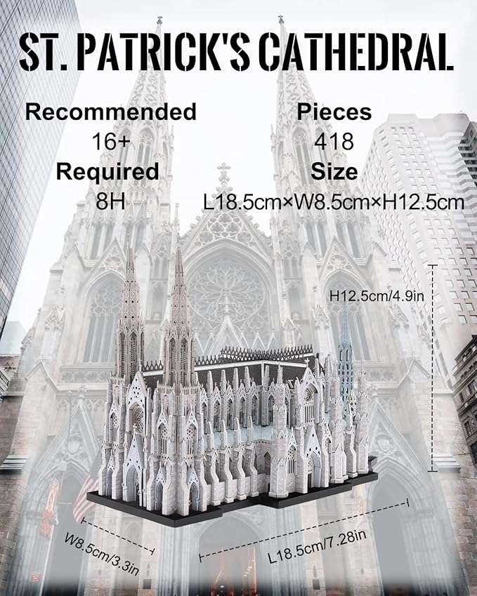 Piececool 3D Metal Puzzles for Adults, St. Patrick's Cathedral Model Kits,New York Cathedral Architecture Building Kits, DIY Hobbies Crafts for Adult Family Time,Home Decor Best Gifts