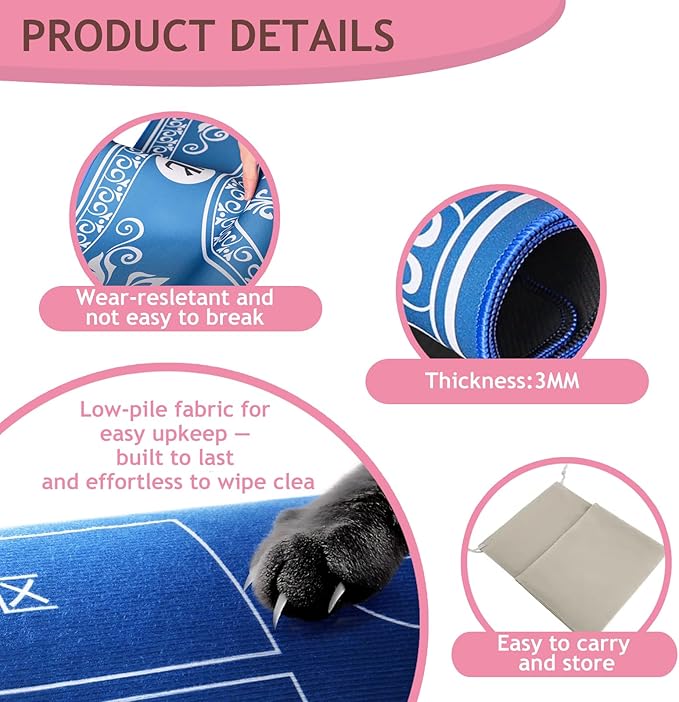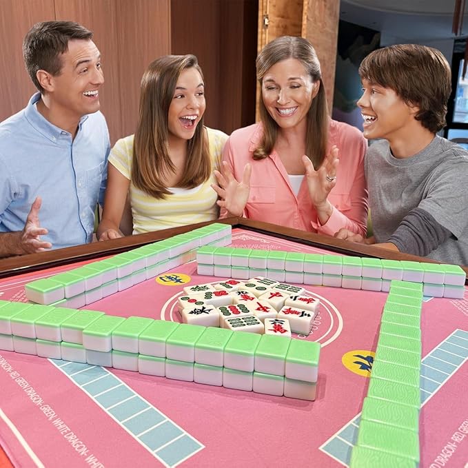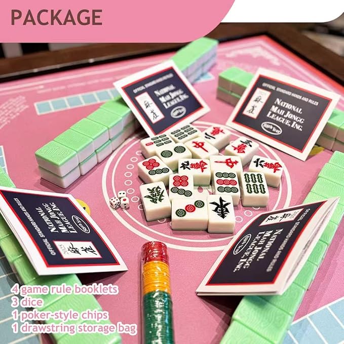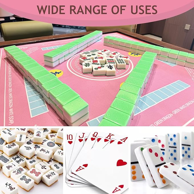 Mahjong Mat for Table - Non-Slip Foldable Felt Mat with Dice, Poker Chips & 4xRule Guides - Portable Mah Jongg Mat Playing for Chinese & American Mahjong/Poker/Board/Card Games/Dominoes
