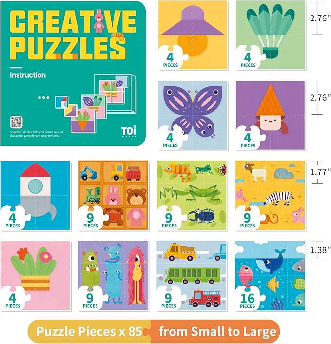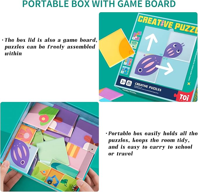 TOI Creative Puzzles for Kids 3-5, Educational Game for 3+ Year Old, Brain Teaser Jigsaw Puzzle with Game Board, Toddler Preschool Learning Activity Color Shape Cognition