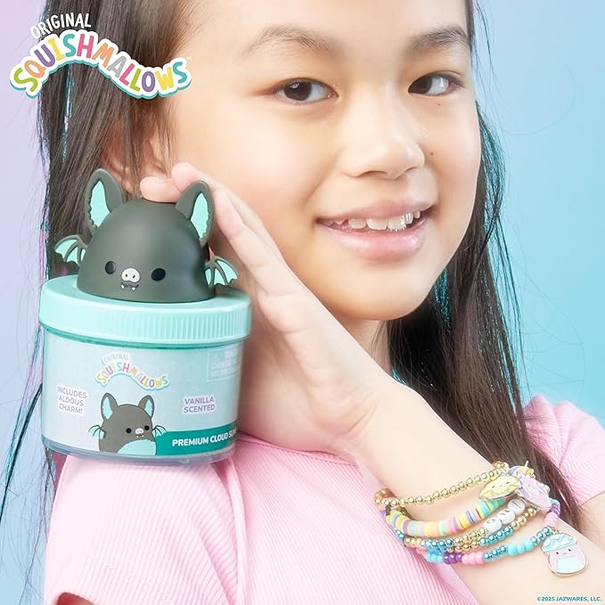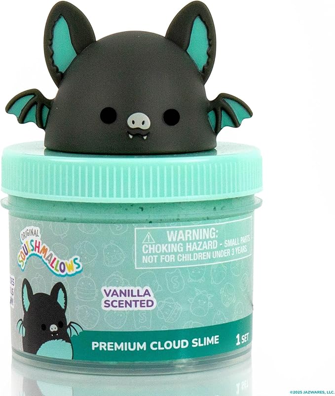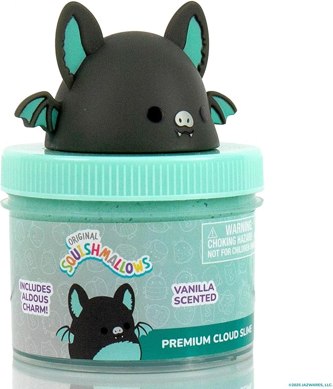 Original Squishmallows Aldous The Fruit Bat Premium Cloud Slime, Vanilla-Scented, 8 oz., Storage Container with Figurine Topper, Rubber Charm, Goodie Bags Stuffers, Kids Party Favors, Sensory Toy