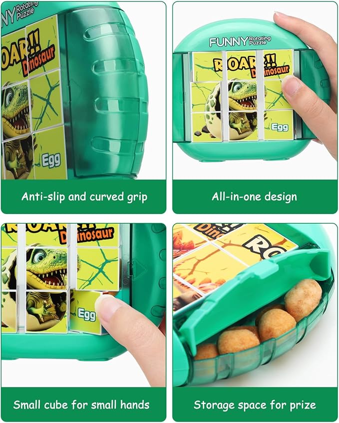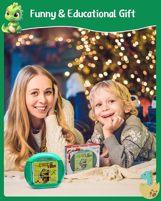 Rotating 3D Puzzle for Kids 3 4 5 6 7 Year Old, 4 Puzzles in 1, Handheld Game Fidget Toys for Travel, Cars & Plane, Fine Motor Skills Developing (Roar Dino Squad)