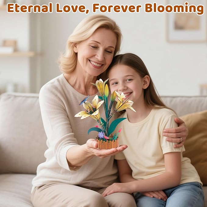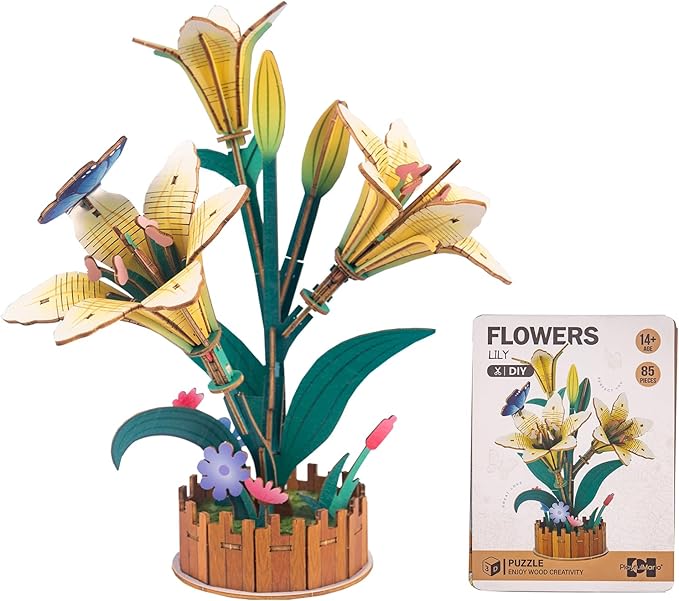 3D Wooden Flower Puzzles for Adults Lily, DIY Artificial Flower Building Set Wooden Bloom Craft Kits Home Decoration, for Women Mom Birthday Thanksgiving Christmas Valentine's Day