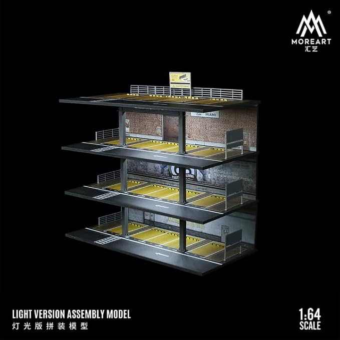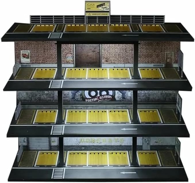 1:64 Scale Multi-Level Display Garage Diorama – 4-Tier Urban Parking Scene with Steel Frame Look – 30x15x28.5 cm for Diecast Car Models