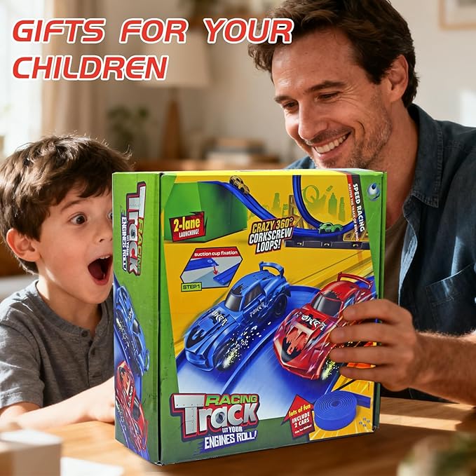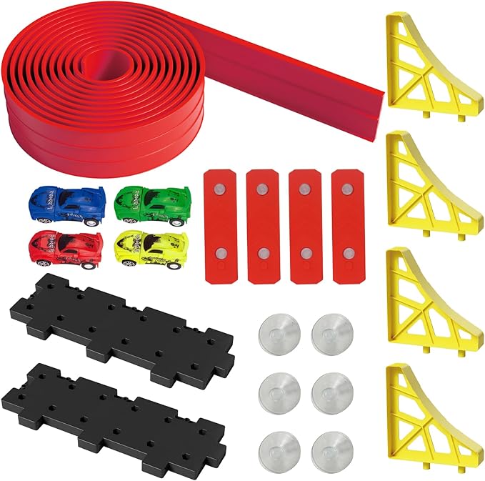 19ft Build Anywhere Portable Race Track with Suction Cups - Flexible Roll-Up Design Fits 1/64 Scale Cars, Portable Toy Gift for Kids 4+ Year Old
