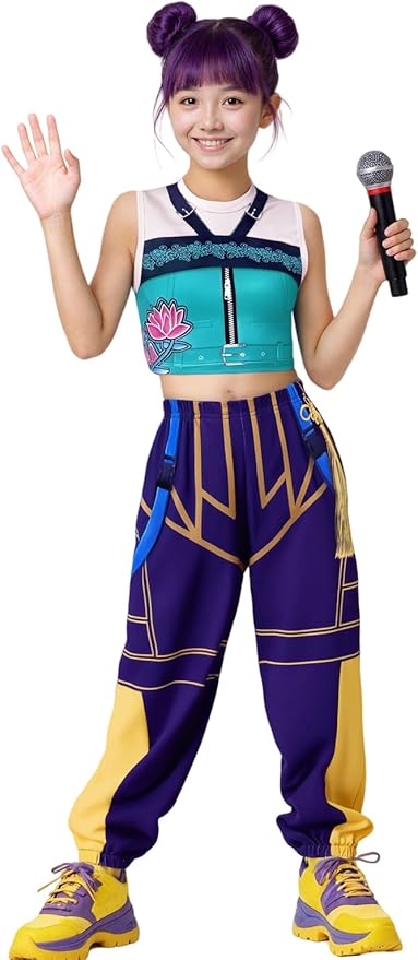 Girls Demon Pop Singer Hunters Costume 3-14 Years Stage Dance Idol Cosplay Outfit, Kids Halloween Costumes