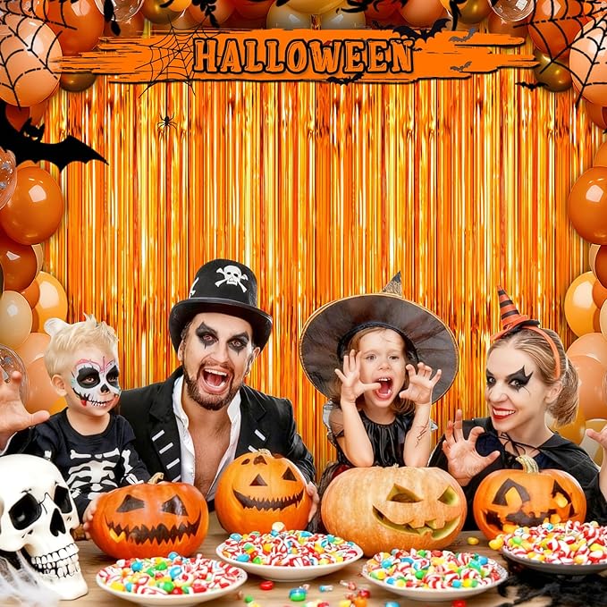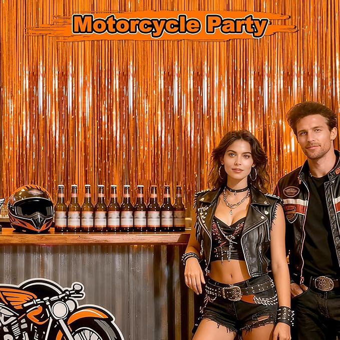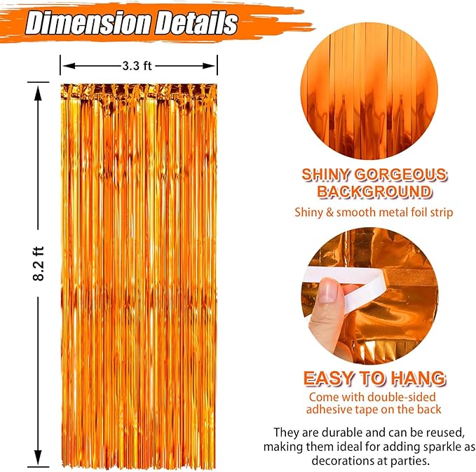 2 Pack Orange Foil Fringe Curtains Streamers Party Decorations 3.3 x 8.2 ft, Pink Tinsel Curtain Fringe Backdrop for Parties, Door Fringe Birthday Streamers, Barbie Backdrop Birthday Party Decorations