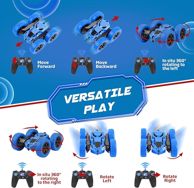 About This 【360° Rotating & Double-Sided Remote Control Car】Made for little drivers, big thrills. Chunky tires grip carpet, grass, gravel,... Read more