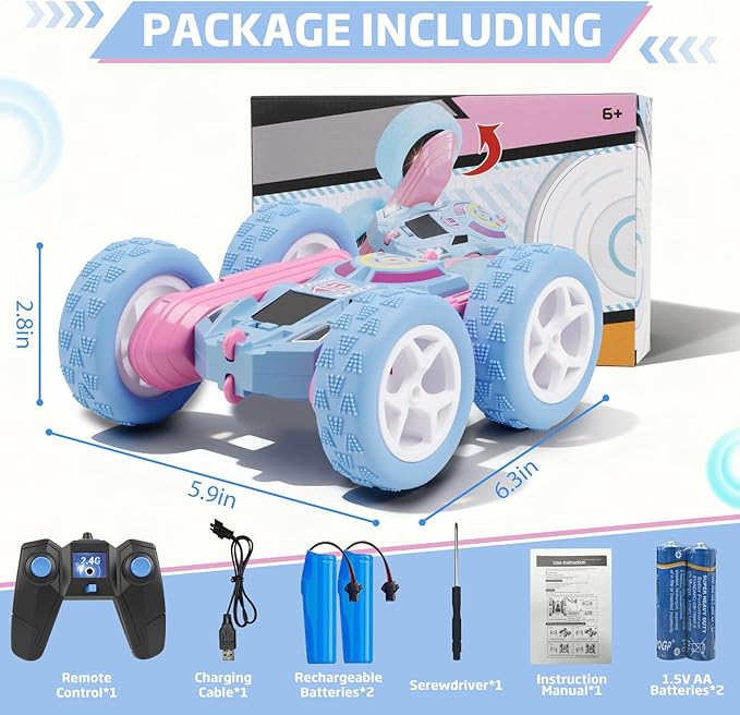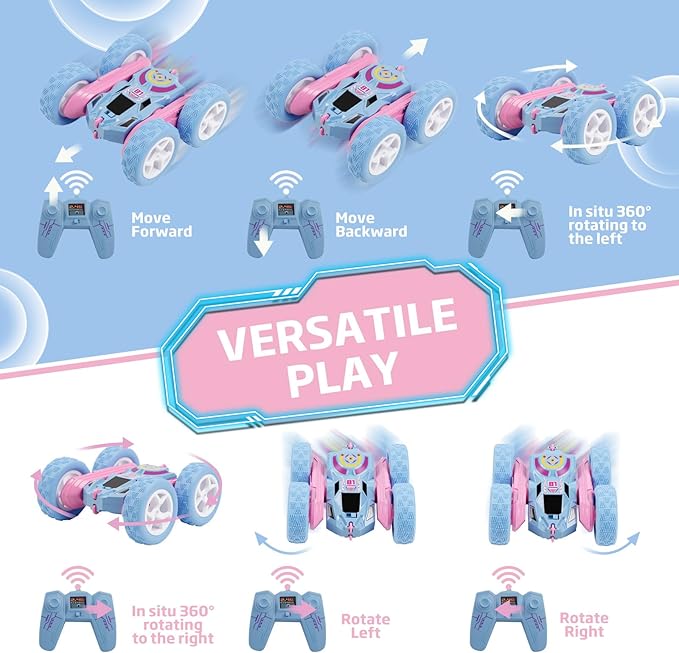 About This 【360° Rotating & Double-Sided Remote Control Car】Made for little drivers, big thrills. Chunky tires grip carpet, grass, gravel,... Read more