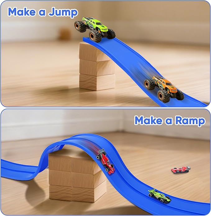 15 Ft Double Sided Flexible Race Track Set with 6 Toy Cars for Kids (Blue)