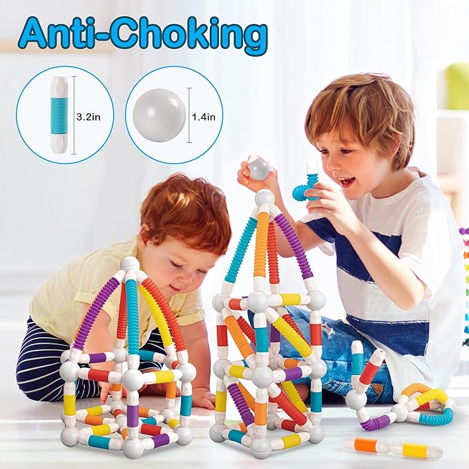 Magnetic Building Blocks Construction Set, 66 Pieces, Educational STEM Toy with Flexible Tubes and Connectors (66PCS)