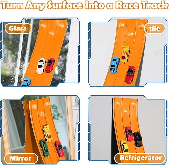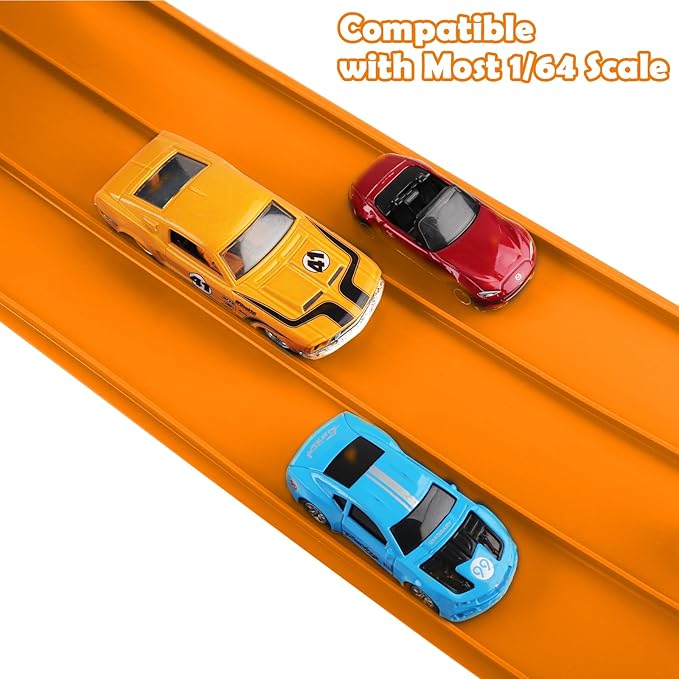 3-Lane Flexible Race Track for Kids 15ft Race Car Track Compatible with Hot Wheels, Matchbox and Diecast 1/64 Scale Cars, Flexible Car Track Race Ramp Toy with Strong Suction Cups