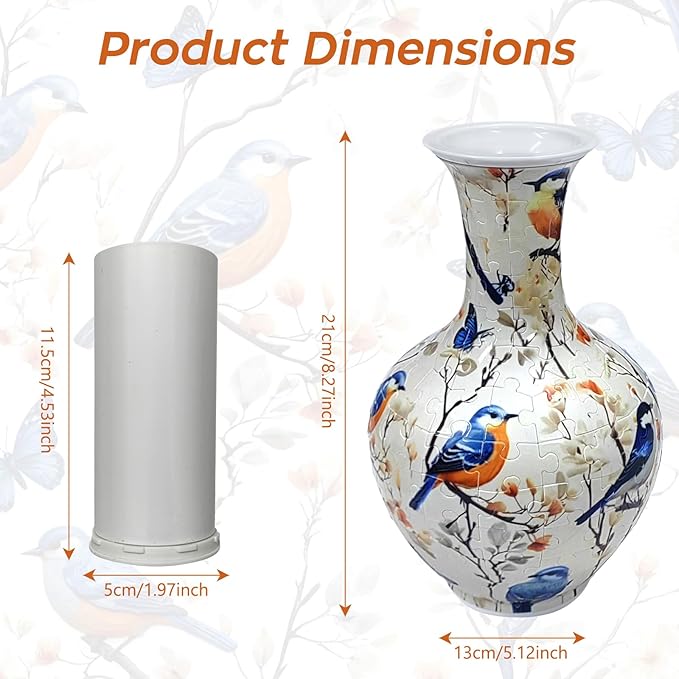 3D Puzzles,164 Unique Flower Vase Puzzle Pieces for Adults, Curved Plastic Vase Exquisite Decorative Gift for Flower Arrangements and Home Decoration,Crafts for Adults (10 Birds)