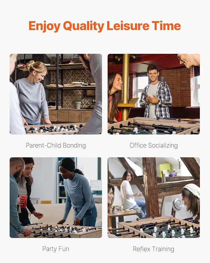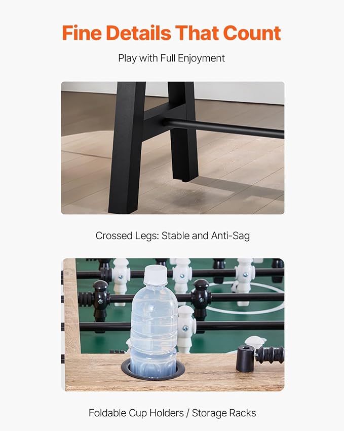 VEVOR Foosball Table, 55-inch Standard Size Table, Indoor Full-Size Foosball Tables with 4 Balls and 26 Players, Includes Durable Soccer Set, Score Keeper & Cup Holders, for Home, Family, Game Room