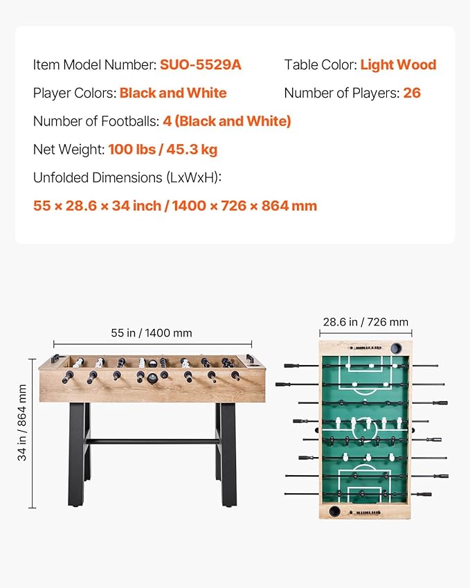About This Sturdy and Durable: This 55in foosball table is made of premium MDF, solid in texture and able to... Read more