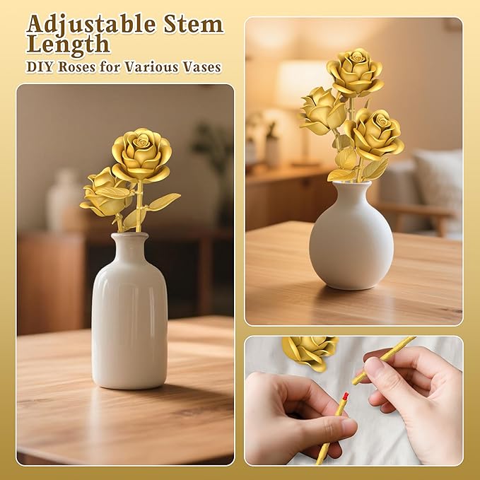 About This {Eternal Luxury Gold Rose Assembly Kit} - This exquisite building block set features three eternal gold roses, comprising... Read more
