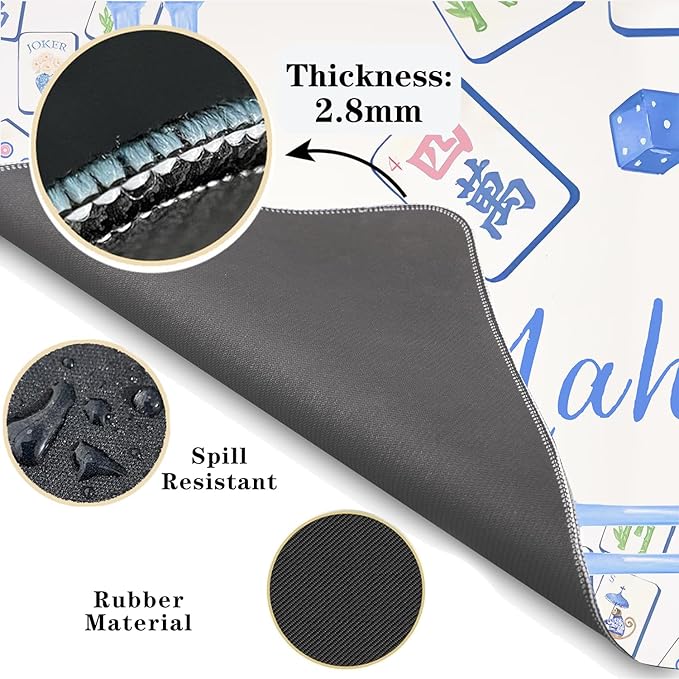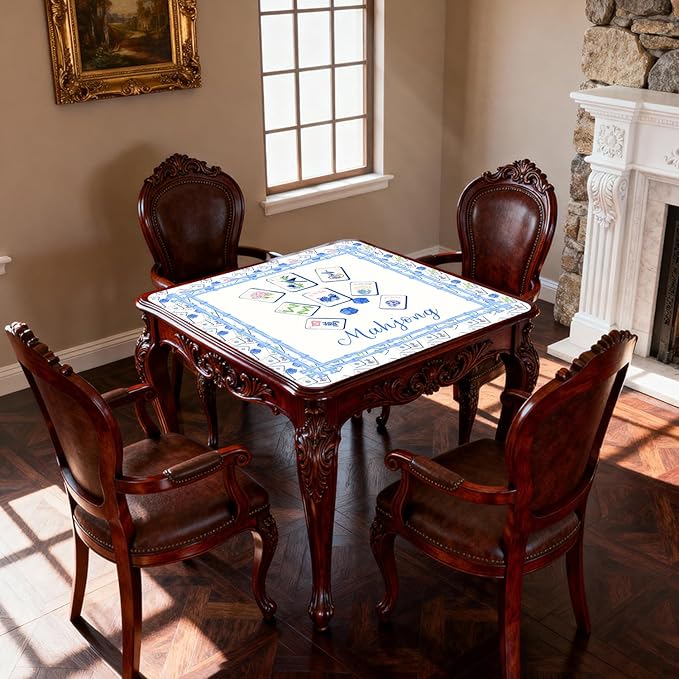 Chinoiserie Mahjong Mat 31 x 31 in, Blue and White Grandmillennial Mahjong Mat for Table, Non-Slip Noise Reduction Game Table Cover Tablecloth for Card Poker Dominoes Dice and Board Games
