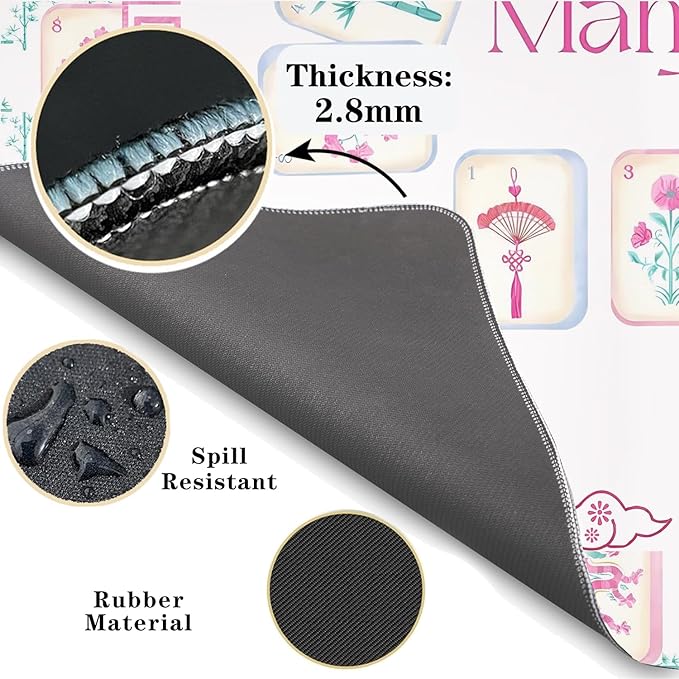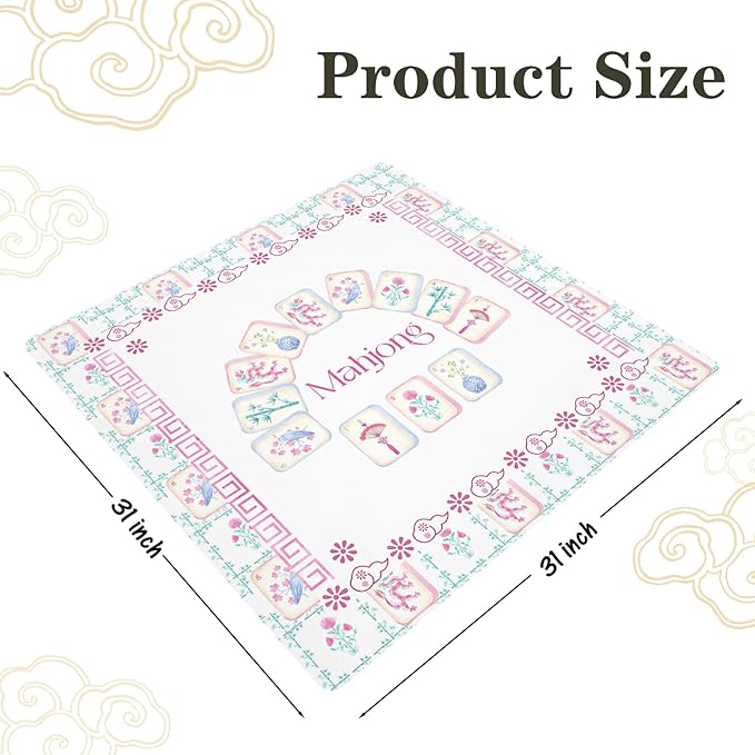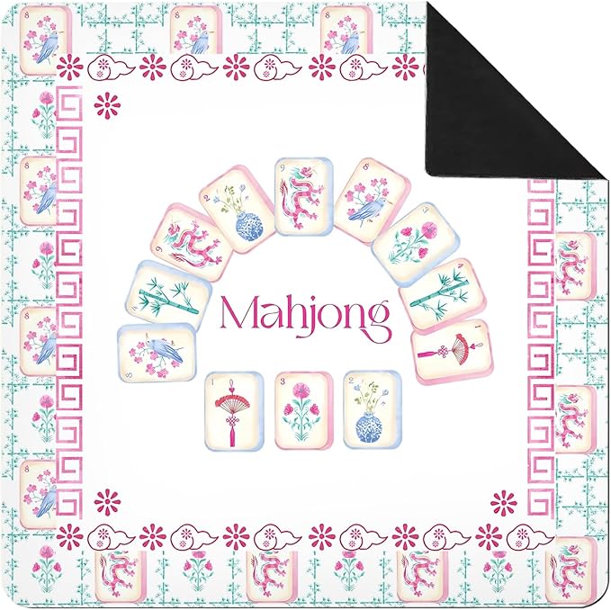 Pink and Green Chinoiserie Mahjong Mat 31 x 31 in, Grandmillennial Mahjong Mat for Table, Non-Slip Noise Reduction Game Table Cover Tablecloth for Card Poker Dominoes Dice and Board Games