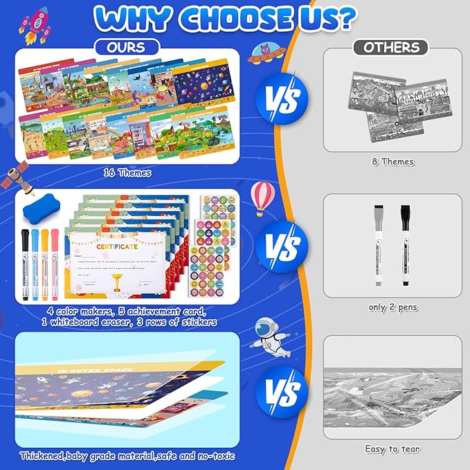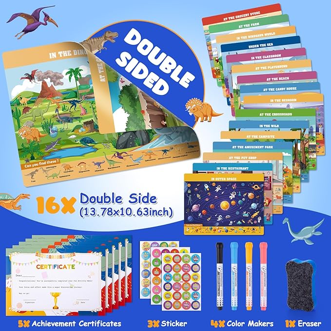 Search Find Activity Books for Kids 3-5 Preschool Learning Activities Reusable Busy Book with 4 Markers 16 Educational Theme Kids Games 4-8 Road Trip Activities Toddler Travel Car Game Toy Gift