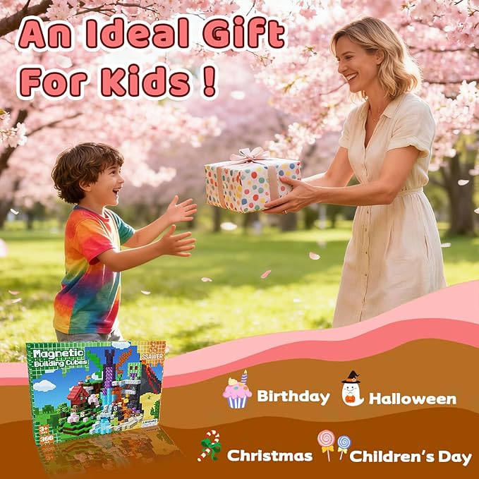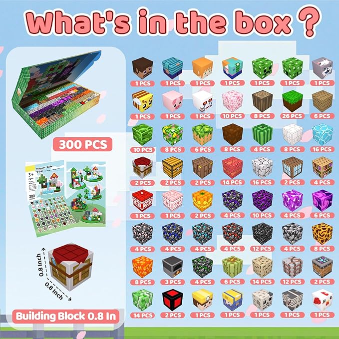 About This 【Magnetic Blocks for Kids】This set includes 300pcs 0.8inch magnetic blocks in 56 distinct designs, plus a creative storybook... Read more