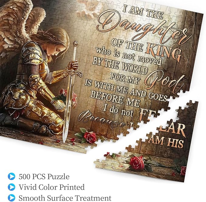 Christian Jigsaw Puzzles 500 Pieces for Adults, Warrior Woman with Bible Verses, Inspirational Religious Wooden Puzzle, Faith-Based Gift