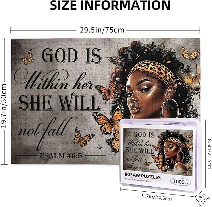 African American Jigsaw Puzzles 1000 Pieces for Adults, Psalm 46:5 Bible Verse, Inspirational Black Woman Wooden Puzzle for Stress Relief & Home Decor