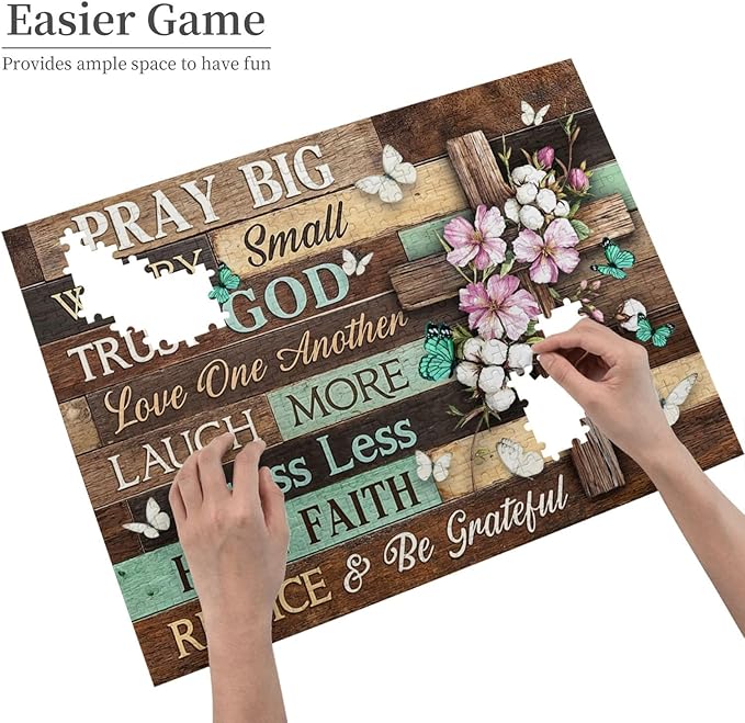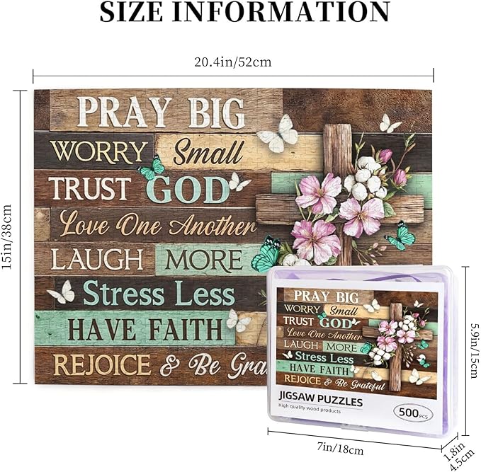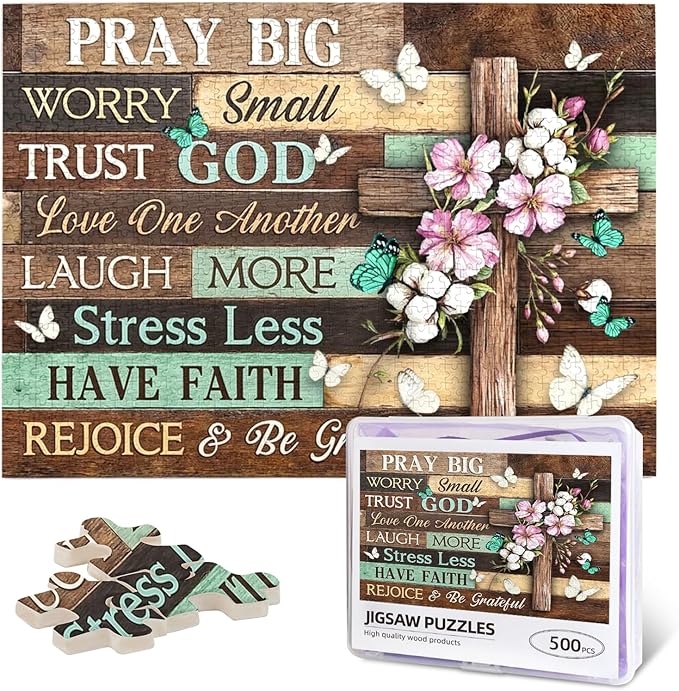 Christian Jigsaw Puzzles 500 Pieces for Adults, Elegant Cross with Pray Big Worry Small Trust God Quote, Religious Wooden Puzzle, Faith-Based Home Decor & Uplifting Gift