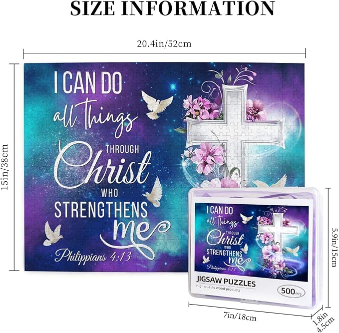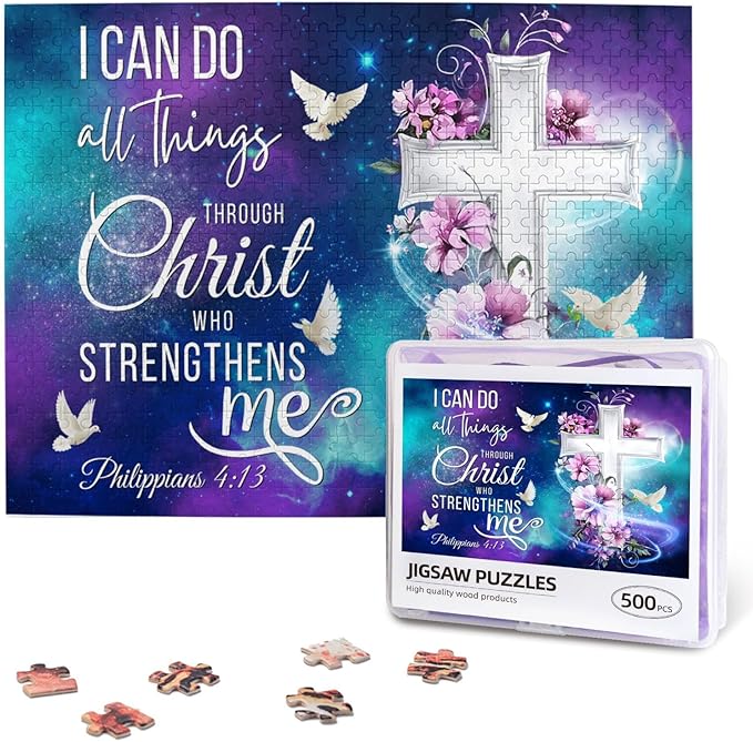 Christian Jigsaw Puzzles 500 Pieces for Adults, Shining Cross & Philippians 4:13 Bible Verse, Uplifting Religious Wooden Puzzle, Faith-Based Gift