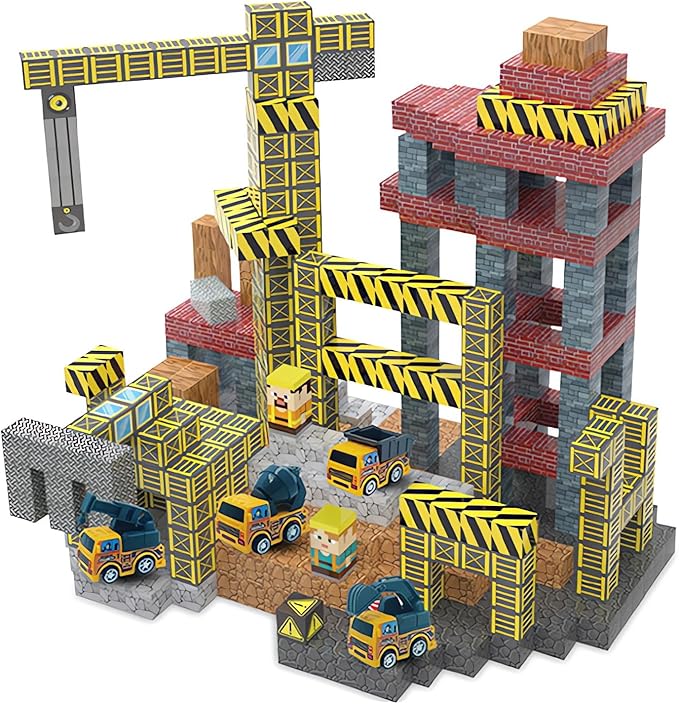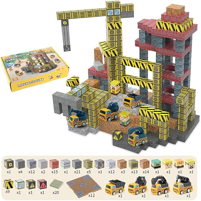 About This CONSTRUCTION SET: 136-piece magnetic building block set includes 4 toy trucks and various construction-themed pieces for creative building... Read more
