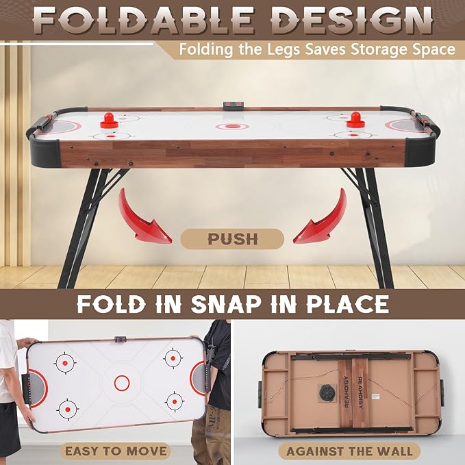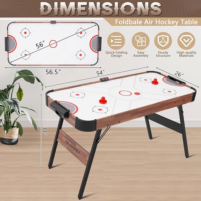 56” Foldable Air Hockey Table, Folding Indoor Hockey Game Table w/Accurate Electronic Scoring, Powerful Motor, 2 Pucks and 2 Pushers for Adults Kids, Home Game Room