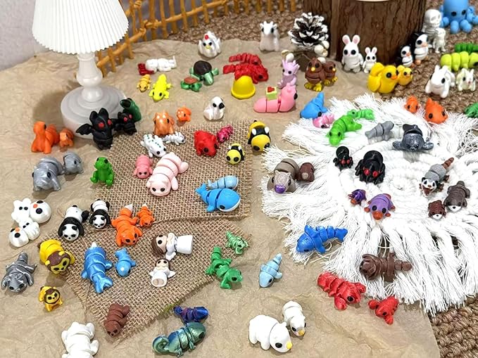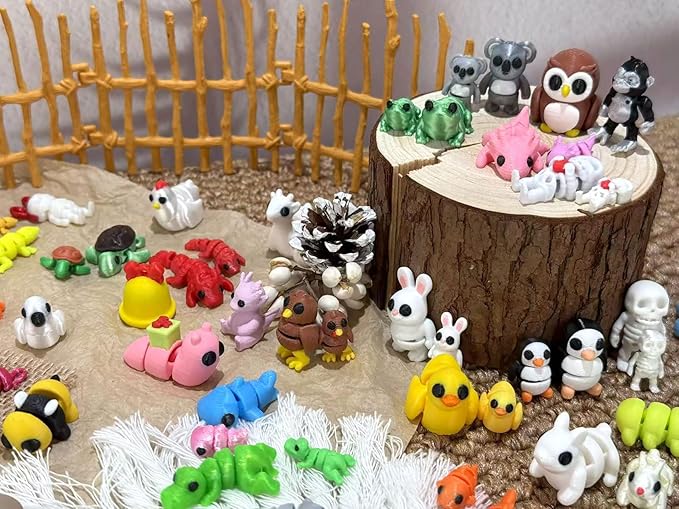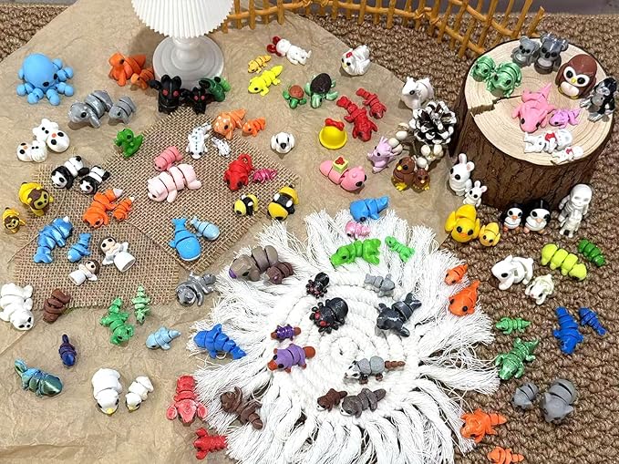 102 Pcs Mini Random 3D Printed Animal Figurines Set, Flexible Articulated Fidget Toys,Surprise 3D Printed Animals Cute Desk Decor, Party Favors, Classroom Rewards(52 Large 50 Small)