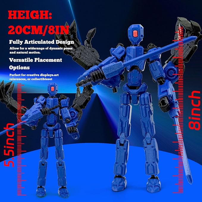 8Inch T13 Action Figure Assembly Completed, T13 Multi-Jointed Movable Robot Action Figure Set,Collectors Desktop Decorations for Game Lovers Toys (Blue)